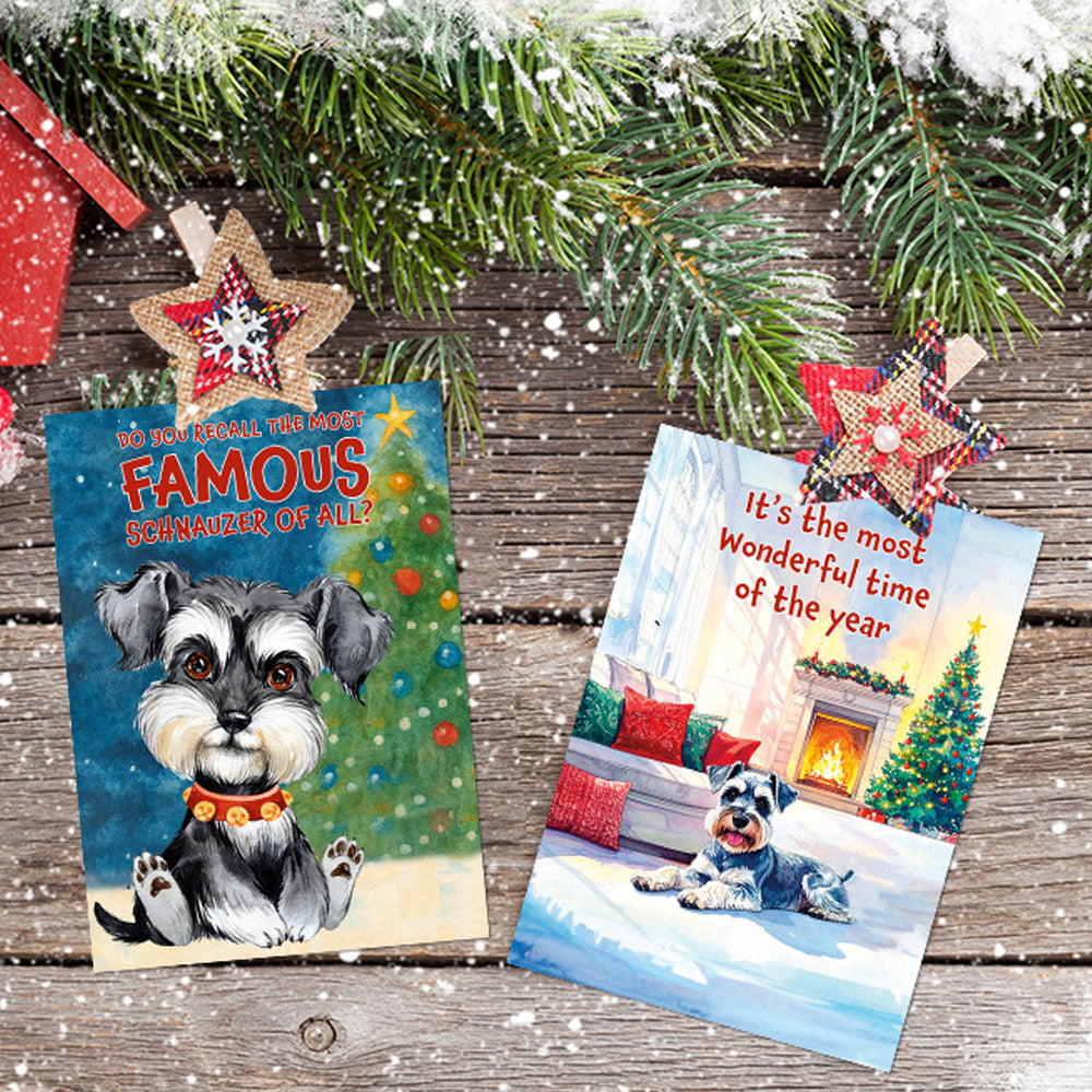This charming card isn’t just a fun holiday greeting — it’s part of a mission to help miniature schnauzers in need. 50% of net profits from each purchase go to Schnauzer Love Rescue, Inc., supporting nearly 100 foster families caring for miniature schnauzers until they find their forever homes.