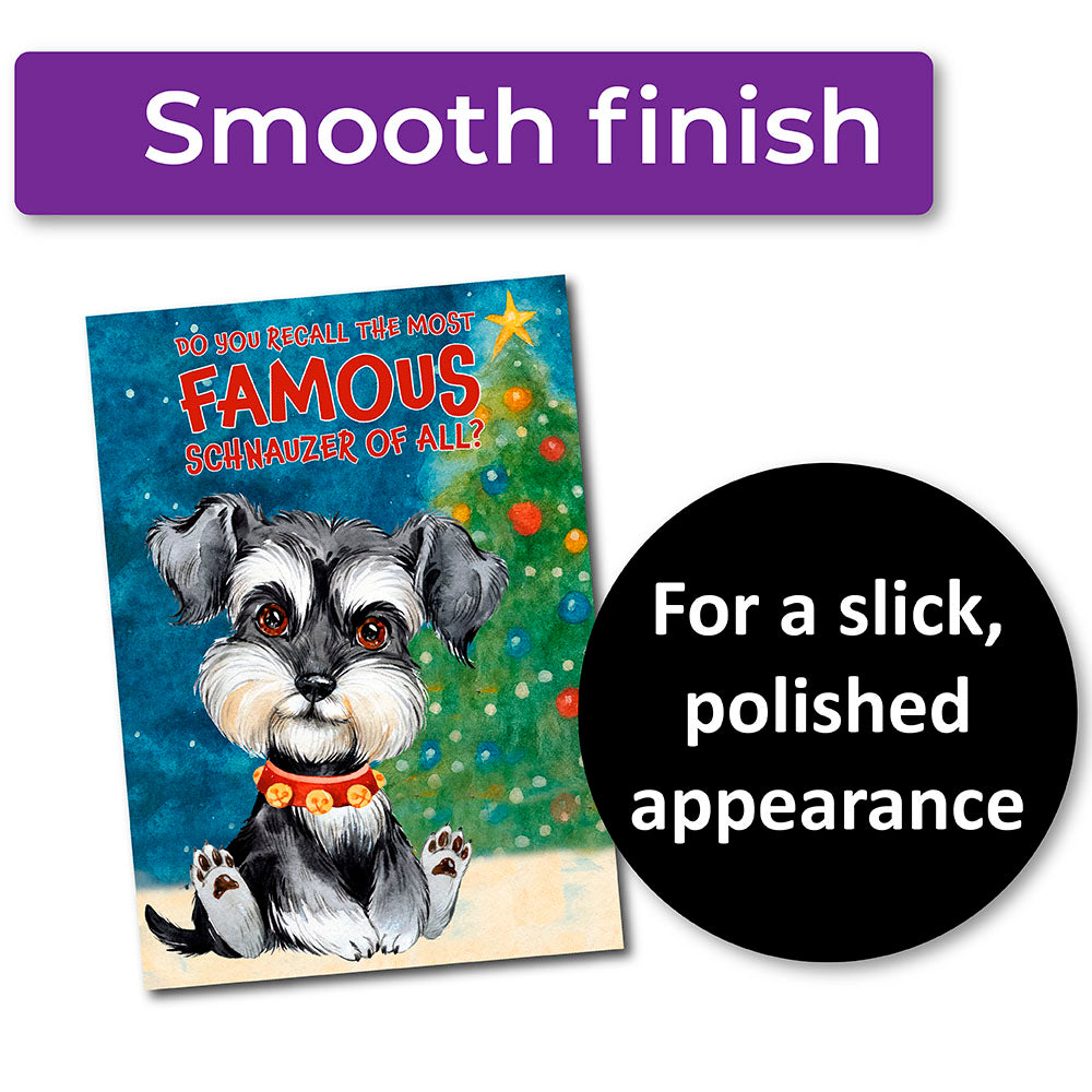 This charming card isn’t just a fun holiday greeting — it’s part of a mission to help miniature schnauzers in need. 50% of net profits from each purchase go to Schnauzer Love Rescue, Inc., supporting nearly 100 foster families caring for miniature schnauzers until they find their forever homes.